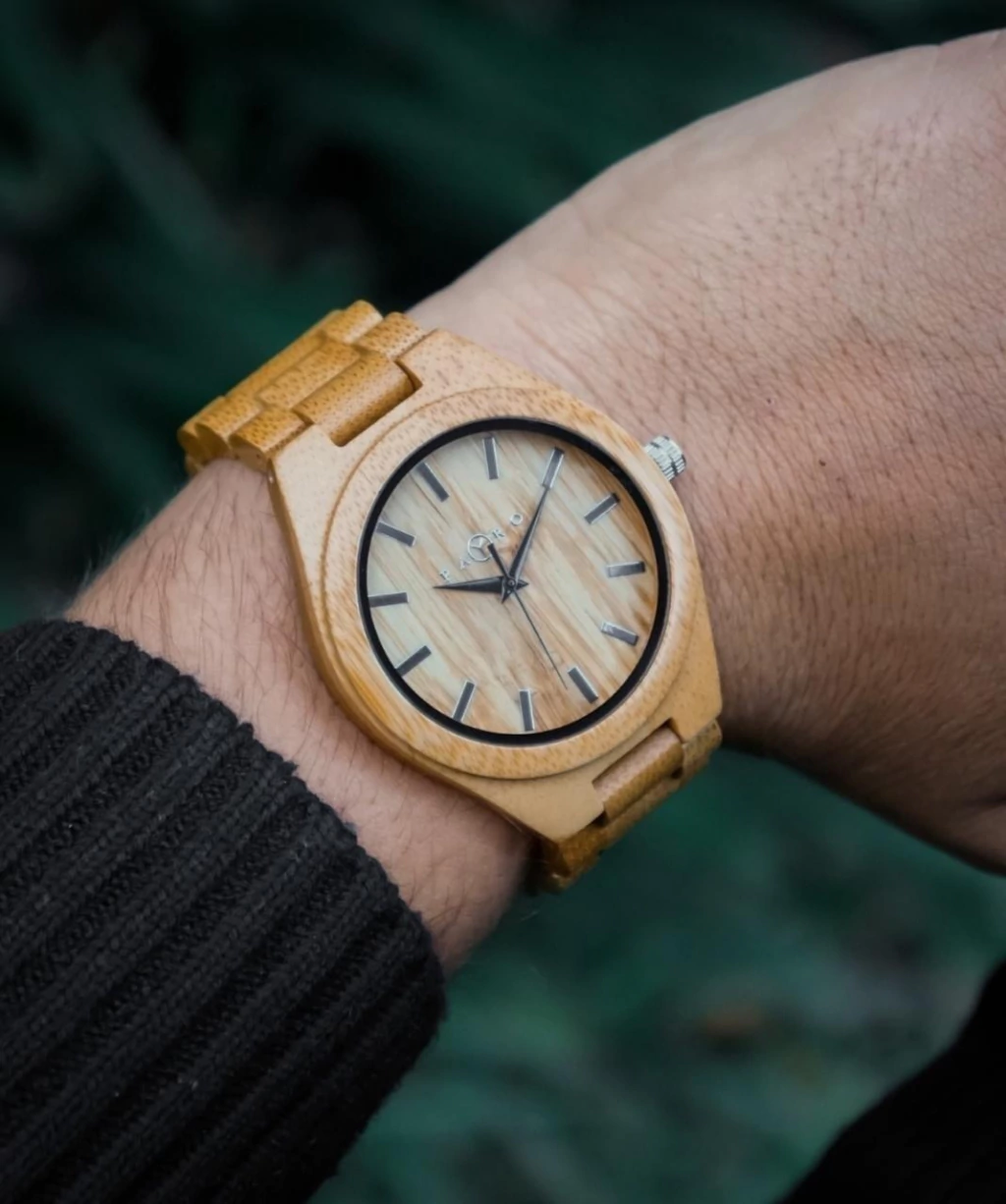 El Fauno II está hecho íntegramente en bambú, una madera liviana, resistente y con una estética limpia que lo hace único. Con maquinaria japonesa y diseño sobrio, es el reloj ideal para quienes buscan un estilo fresco, natural y con personalidad.