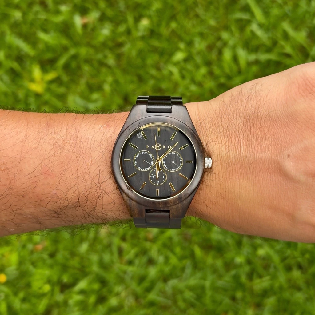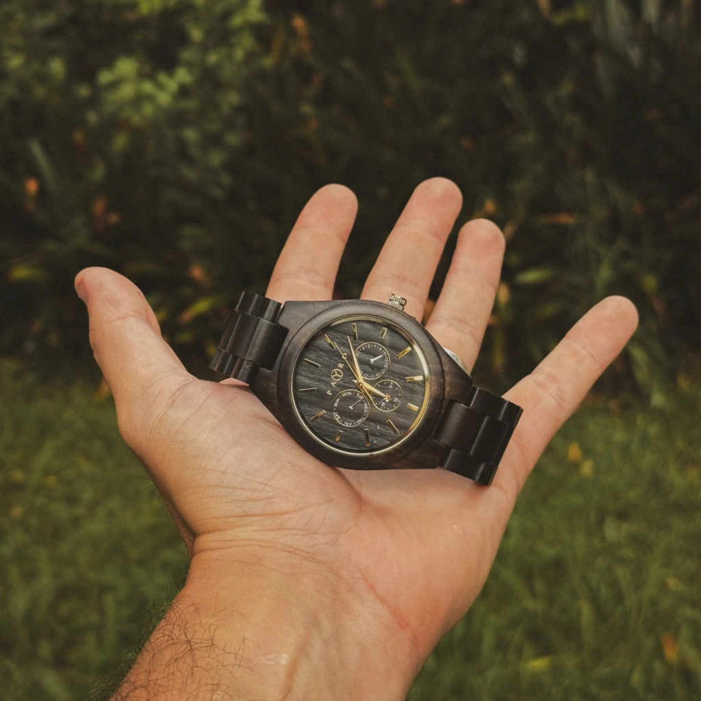 El Black Ares combina la fuerza de la madera de ébano con la precisión de la ingeniería japonesa. Un reloj de carácter sólido, ideal para quienes valoran la distinción en cada detalle.
