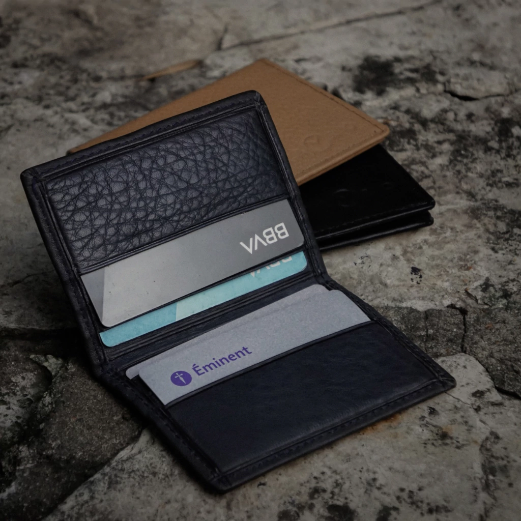 Ideal para llevar lo esencial con estilo minimalista. El Jobs es un tarjetero compacto y funcional hecho de cuero vacuno 100% argentino, con espacio para 6 tarjetas y dos bolsillos internos.